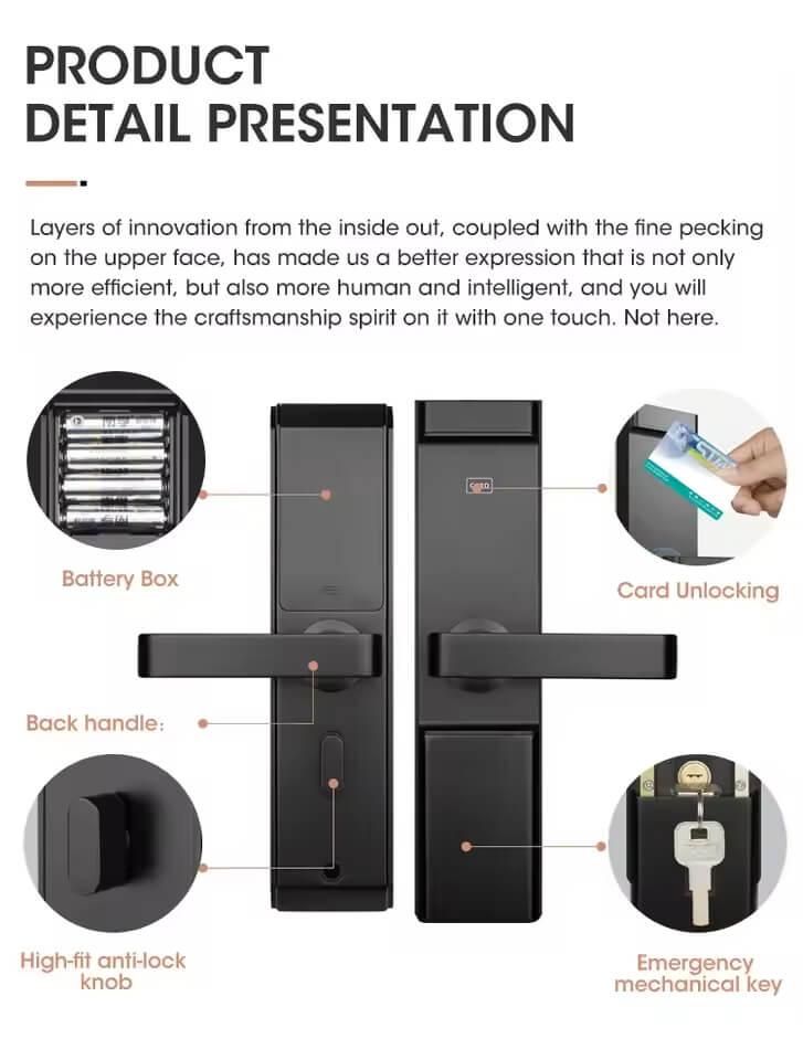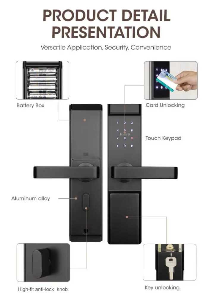 1. Keyless Entry Lock: App+ keyboard+ ngerprint+IC card+mechanical key. identify fingerprint in 0.3 seconds, unlock in 1 second,higher recognition rate.