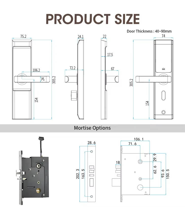 Security Wireless Electronic Digital Door Mortise RFID Card Code Touch Keypad Blue Tooth TTlock Hotel Smart Lock